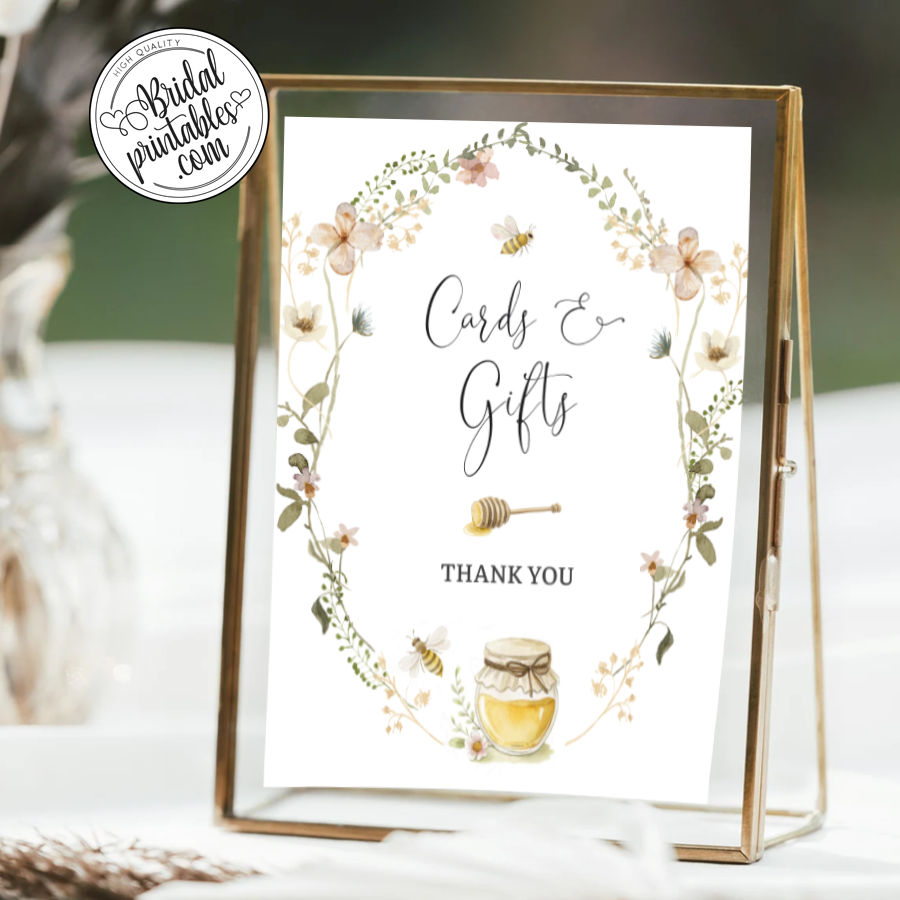 🎀 Celebrate the bride-to-be with this charming bee-themed bridal shower table sign. Adorned with whimsical delicate wildflower and bees illustrations, it brings a sweet and rustic touch to your event. Perfect for guiding guests or highlighting special areas like the gift table or dessert station, this sign seamlessly blends with a romantic and feminine décor.